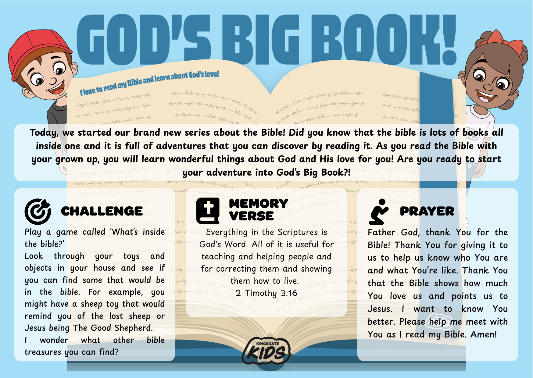 Jesus, thank You for loving us so much! We want to show we love You by giving. Thank You that, when we give You what’s precious to us, You see our little gift as something much bigger. Thank You, Jesus, for everything You’ve given us to enjoy. Amen